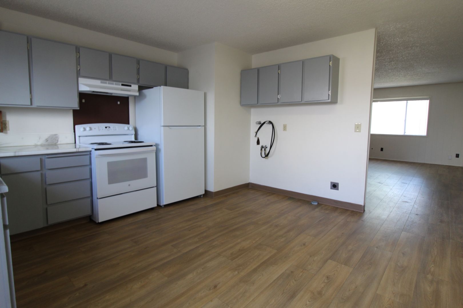 2 Bedroom, 1 Bath duplex, Carport, Small Fenced backyard, Porch, Living room, Dining area, Range, Fridge, W/D hookups, Natural gas heat, No Carpet-LVP installed throughout. Sewer/Garbage paid. NO pets, NO Smoking. $995.00 Rent; $1,492.50 Minimum Sec Dep